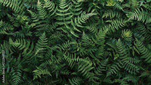 A vibrant tapestry of lush fern fronds, showcasing a rich array of deep green hues and intricate leaf details.