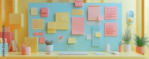 workspace, design, colours, minimalism, organisation, note, visual, planning, idea, inspiration, pastel, layout, friendly, vibrant, stationery, aesthetic, contemporary, creativity, tool, desk, artistic, productivity, plant, office, ambience, cosy, life, home, arrangement, modern, clean, cheerful, blue, decor, yellow, pink, nature, wall, bright, environment, essential