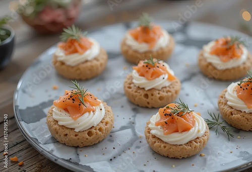 A video clip of festive canapés with cream sauce being prepared and served on a platter