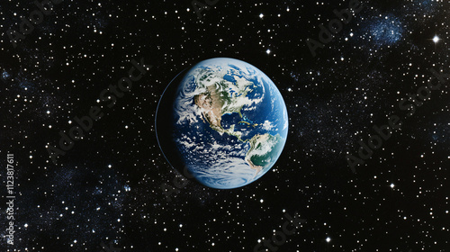 A view of Earth from space, illuminated by the sun with stars sparkling in the distance.