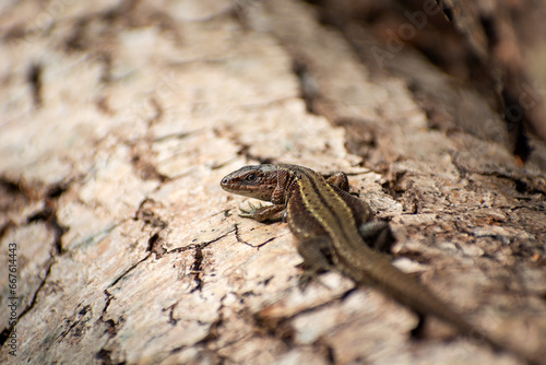 A viviparous lizard on a tree trunk