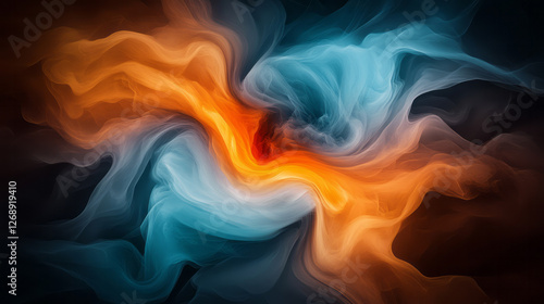 A vortex-like tunnel of electric blue and fiery orange ribbons, twisting and spinning in a