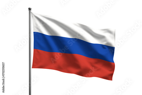 A waving Russian flag on a metal pole