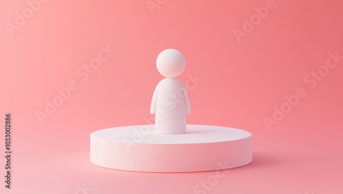 three-dimensional, figure, person, minimal, pink, white, platform, racked, symbol, icon, human, model, abstract, design, illustration, render, simple, shape, graphic, round, single, geometric, concept, idea, object, digital, art, image, background, studio, modern, clean, contemporary, isolated, technology, future