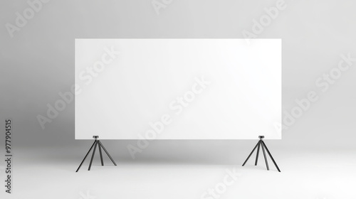 A white, blank banner stand is shown. It's a portable, roll-up design perfect for advertising. You can imagine your own design on this empty banner.