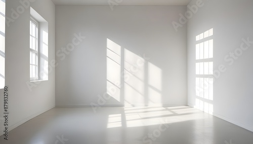 A White empty room with shadows of a window, empty wall background