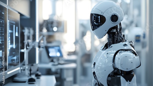 robot, android, android, artificial, intelligence, ai, laboratory, laboratory, white, futuristic, science, technology, research, computer, screen, display, monitor, datum, analysis, experiment, wire, gear, mechanical, automation, machinery, metal, panel, glossy, plastic, modern, sleek, clean, sterile, light, background, blur, interior, design, concept, future, progress, innovation, digital, programming, code, development, engineering
