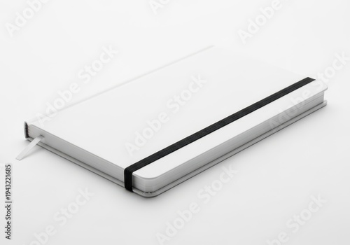 notebook, white, black, elastic, band, bookmark, ribbon, stationery, office, supply, paper, writing, journal, diary, book, plain, background, simple, minimalist, design, product, photo