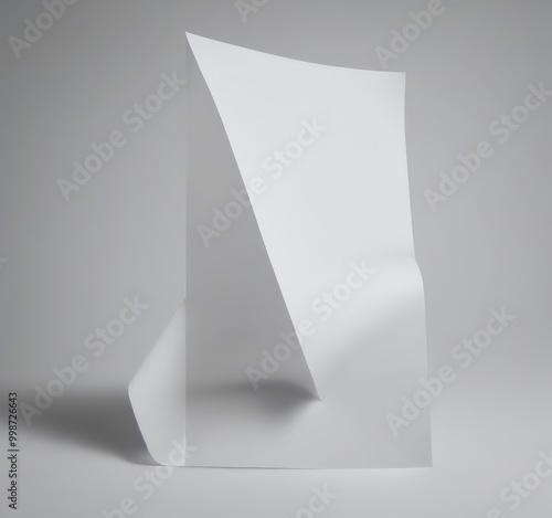 paper, document, empty, blank, white, advertising, advertisement, advertisement, campaign, template, isolated, up, design, presentation, showcase, background, page, sheet, illustration, shadow, business, market, marketing, grey, grey, flier, booklet, sculpture, triangular, shape, curved, edge, stand, plain