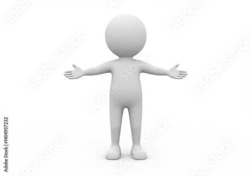 A white stick figure standing with arms outstretched on a clean white background in a studio shot