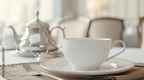 teacup, teapot, silverware, wooden table, napkin, white, silver, tea, hot drink, beverage, drink, dining, table setting, tabletop, kitchen, home, interior, tableware, china, porcelain, breakfast, lunch, dinner, elegant, classic, simple, minimalist, rustic, natural, wood grain, still life