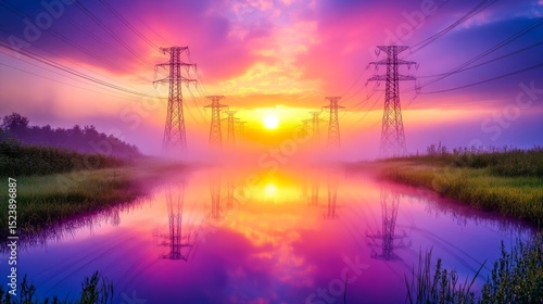 sunset, sky, power, line, road, landscape, colourful, vibrant, horizon, cloud, electricity, transmission, pole, infrastructure, dusk, powerline, cable, silhouette, travel, countryside, evening, nature, scenic, atmospheric, transportation
