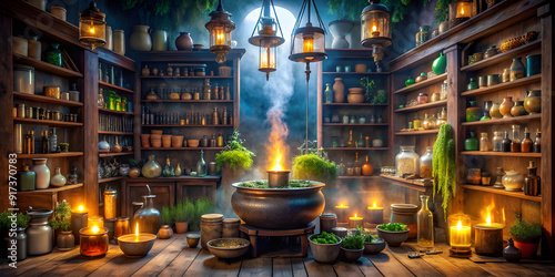 a witch s apothecary filled with shelves of glowing
