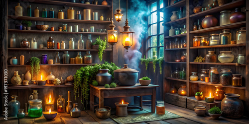 a witch s apothecary filled with shelves of glowing