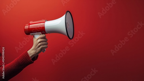 woman, holding, megaphone, chest, red, wall, announcement, message, public, speaker, human, hand, communication, talking, shouting, 1, person, advertisement, voice, screaming, presentation, speech, broadcasting, man, isolated, signs, business, protest, equipment, copy space, address, system, amplifier, marketing, adult, single, object, woman, symbol, idea, background, noise, background, success, education, space, alertness