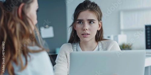woman, person, laptop, computer, work, office, desk, chair, furniture, human, professional, business, modern, technology, device, screen, keyboard, mouse, typing, sharpened