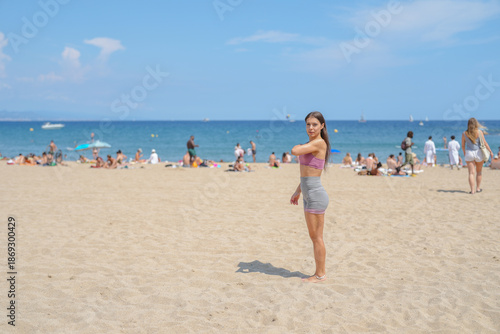 spain, barcelona, german, summer, woman, beach, group, people, wearing, pink, white, bikini, sea, vacation, holiday, female, lifestyle, water, ocean, sand, beauty, travel, young, sun, nature, blue, sky, tropical, paradise, relaxation, body, dress, sunny, leisure, swimwear, attractive, resort, wave, adult, tour tourism, swimwear, coast