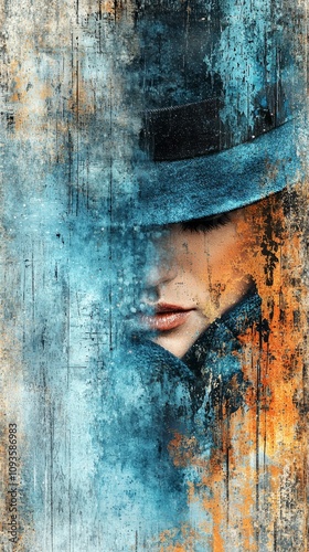 A woman wearing a blue hat and a blue scarf