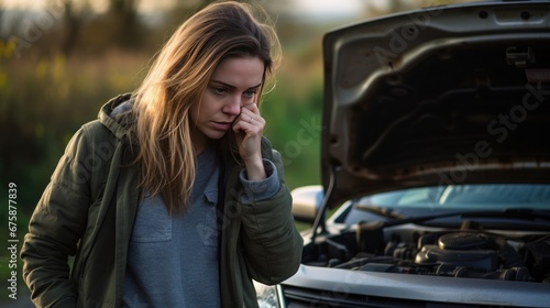 assistance, despair, horizontal, one person, photo, problem, service, transportation, woman, looking, people, repairing, brown hair, communication, mobile phone, adult, broken, car, casual clothes, land vehicle, outdoors, road, sunset, wireless technology, adults only, street, travel, dusk, engine, bankruptcy, female, highway, journey, loneliness, mechanic, sorrowful, solitude, solution, standing, talking