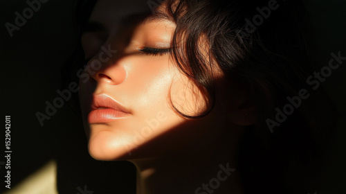 A woman's face side view partially illuminated, with one half in shadow and the other half in light, creating a dramatic contrast.