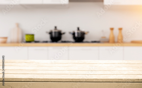 kitchen, countertop, wood, table, surface, background, blurred, pot, pan, cookware, kitchen utensile, modern, minimalist, white, clean, bright, light, food, product, display, presentation, home, interior, design, decor, lifestyle, cooking, dining, food photography, wood texture, wood grain, natural, rustic