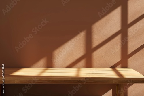 A wooden table with a window in the background. The sunlight is shining on the table, creating a warm and inviting atmosphere
