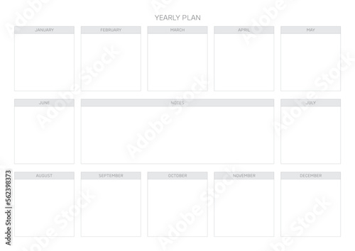 A year goal plan template with a simple and minimal style. Note, scheduler, diary, calendar planner document template illustration.