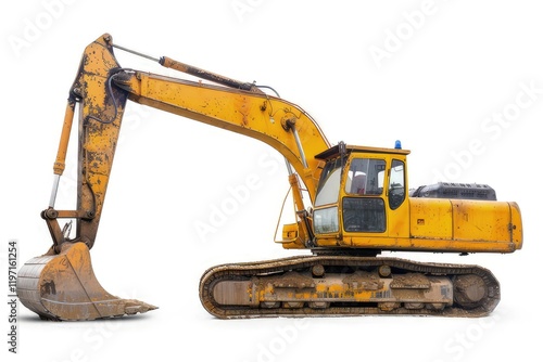 A yellow excavator on tracks, used for digging and construction tasks. isolated on white background