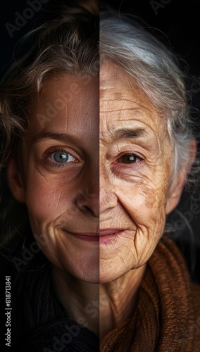 portrait, young, old, person, smile, together, cleaving, half, age, contrast, artwork, oneness, display, happiness, modern, abstract, picture, dualism, image, middle, version, emotion, difference, high-coloured