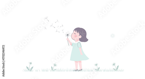 children, girl, blowball, blowing, seed, happiness, nature, innocence, dream, illustration, plant, bloom, flower, spring, young, pretty, peaceful, sweet, joy, summer, cartoon, cheerful, smile, grass, vignetting, children, freedom, fun, childhood, carefree, adorable, airy, light, flower petals, air, wind, tender, whimsical, simple, cute, lovely, delicate