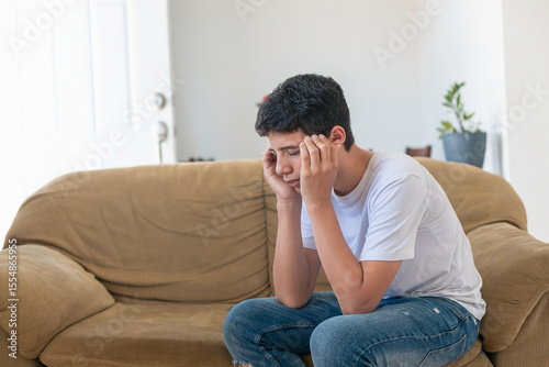 man, depressed, sad, person, stress, upset, home, male, unhappy, caucasian, adult, young, stressed, anxiety, sitting, problem, pain, head, worried, health, suffering, despair, alone, loneliness, trouble, sofa, lonely, guy, sleepy, migraine, copy space, frustration, ache, tension, emotion, portrait, mental, sick, couch, sorrowful, cephalalgia, bankruptcy, expression, exhausted, business, grief, nervous, desperate, lifestyle