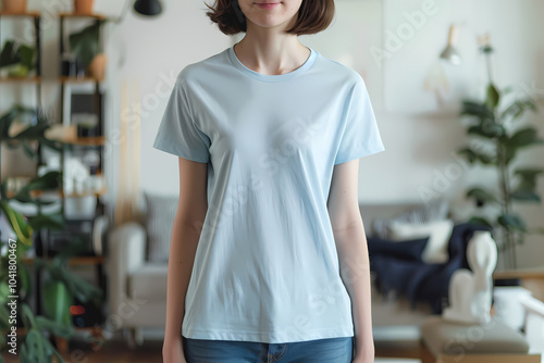 missy, blue shirt, casual clothes, home interior, living room, smiling, trendy, comfortable, portrait, fashion, natural light, homelike, youthful, female, fashionable, lifestyle, expressive, serene, stylish, contemporary, young adult, home decor