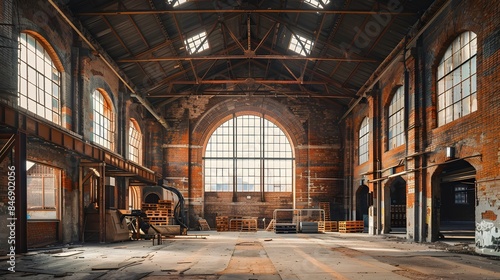 Abandoned Brick Warehouse with Sunbeams