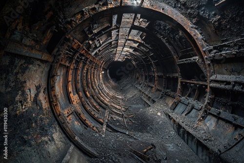 Abandoned coal mine ventilation tunnel interior slung derelict forsaken outcast