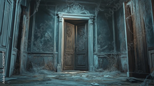 Abandoned Doorway in a Dusty and Cobweb-Filled Room