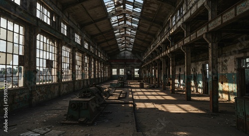 factory, ruin, decay, sunlight, interior, abandoned, exploration, photo, industrial, texture, architecture, concrete, metal, shadow, light, desolate, forgotten, vintage, grunge, structure, wall, beam, window, dust, emptiness, composition, detail, monochrome, haunting