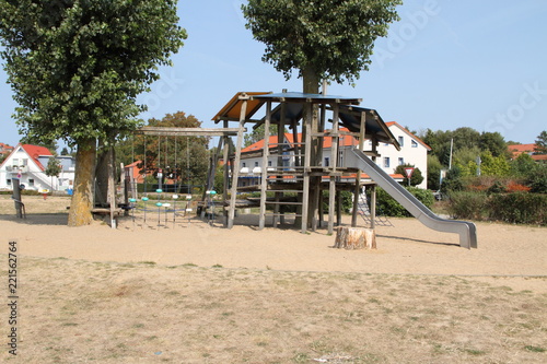 blue skies, recreation, water, see, swing, colourful, roof, scaffold, forest, children's playground, jungle gym, ladder, ladder, recreation area, nature, nobody, park, slide, slide, sand, sandbox, playground, staircase, stair, tower, watchtower, tree, public, adventure, deserted, game, play