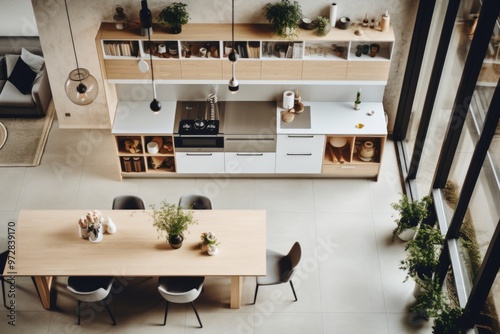 Above view of a nordic kitchen interior