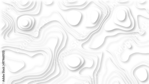 Abstract 3D background creative pattern in illustration with white color design in papercut.Topographic canyon geometric map relief texture with curved layers and shadow. Abstract realistic papercut