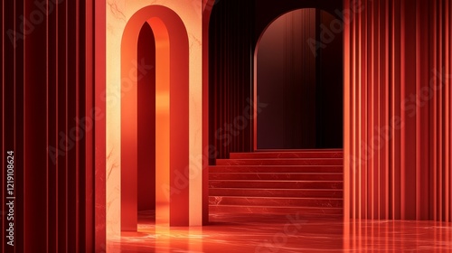 architecture, abstract, design, red, marble, pillar, arch, interior, modern, geometric, space, structure, light, contemporary, symmetry, artistic, elegance, luxury, minimalism, ambience, visual, pattern, decor, style, aesthetic, environment, creativity, innovation, atmosphere, beauty, composition, texture, depth, line, shape, warmth, contrast, high-coloured, striking, allure, inspiration, sophistication, harmony, uniqueness, craftsmanship, calmness