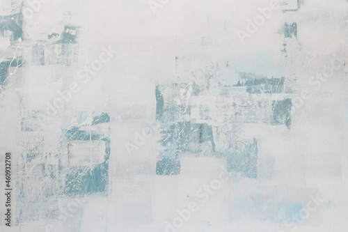 Abstract art background. Oil painting on canvas. Blue and white texture. Fragment of artwork. Spots of acrylic paint. Modern art. Contemporary art. Oil paint