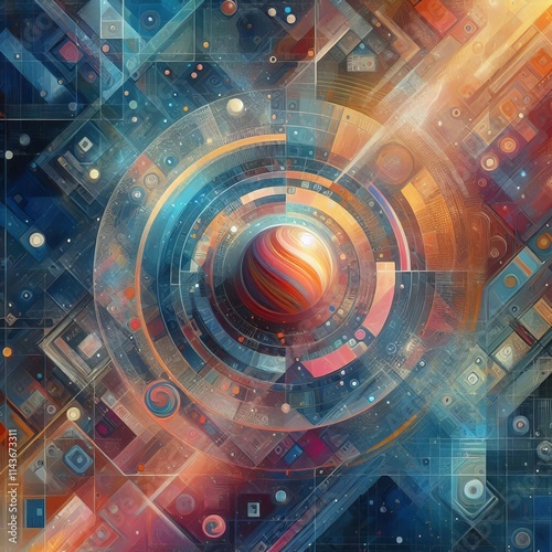 Abstract Art Oil abstract with digital patterns or geometric sha