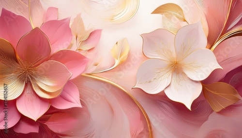 Abstract background. Abstract Floral Pink White Gold. Delicate & romantic pattern. Floral motif in pink, white & gold tones. Elegant & subtle design.