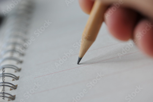 abstract background of close up hand with pencil write some words on notebook