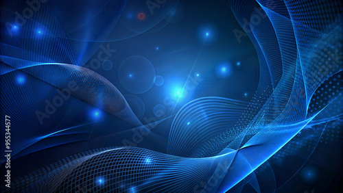 Abstract Background with Blue Gradient Waves and Particles