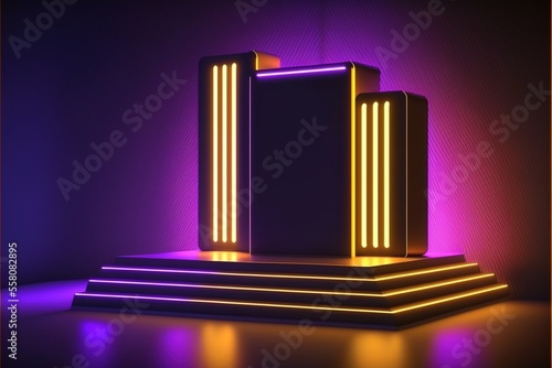 Abstract background with glowing neon lights. generative ai