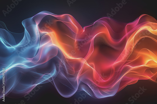 Abstract background with multicolored glowing waves on a black background. curve display.