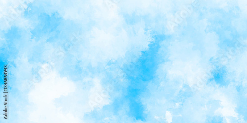 Abstract background with panorama of blue sky and white cloud nature design. horizon spring morning sky with clouds background. hand painted watercolor shades sky clouds.