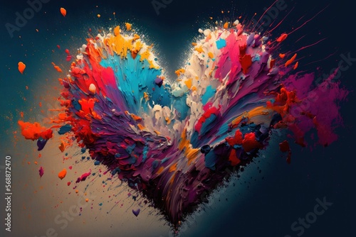 Abstract big heart,watercolor explosion, Valentine's day background ,made with Generative AI