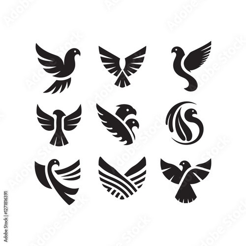 abstract bird logos, Minimalist bird icons, black silhouettes